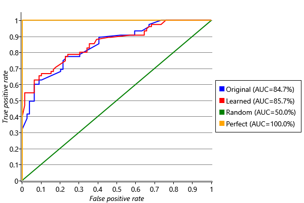 For example, compare the ROC curves below, reproduced from Figure 2.32: